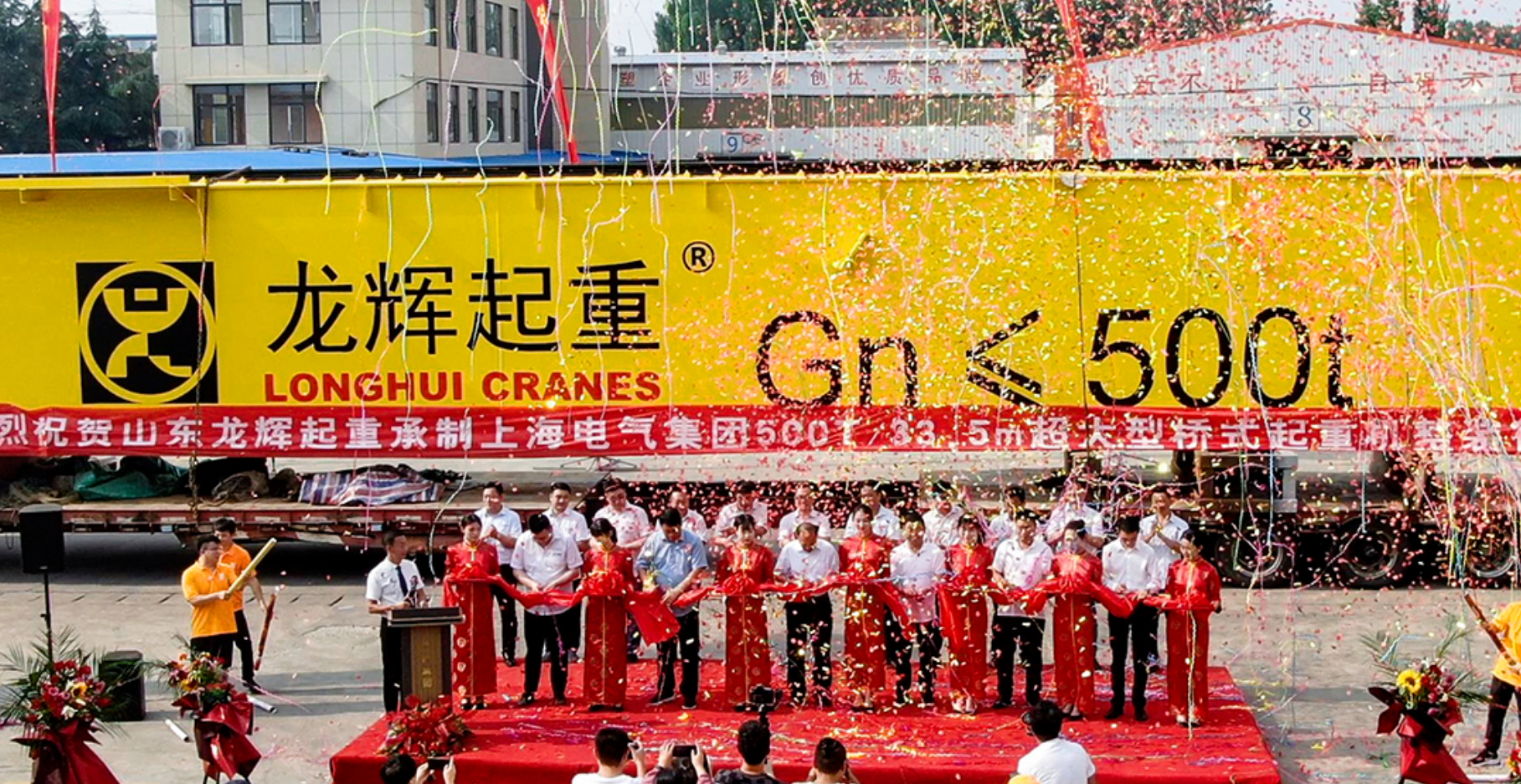 鼓樂齊鳴 歡聲雷動。儀式現(xiàn)場每一位在場嘉賓強(qiáng)烈地感受到龍輝起重上下一心、積極進(jìn)取、開拓創(chuàng)新的精神面貌。參加儀式的主要領(lǐng)導(dǎo)有:新泰市人大常委會副主任、黨組副書記亓桂鋒,羊流鎮(zhèn)黨委書記范育民,羊流鎮(zhèn)黨委副書記、鎮(zhèn)長林曦,羊流鎮(zhèn)武裝部長李宗武以及龍輝起重各級領(lǐng)導(dǎo)、各地合作商及銷售經(jīng)理等,現(xiàn)場200余人共同見證了此次出廠儀式。